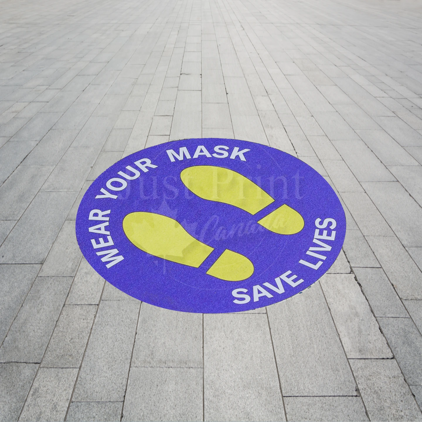 Convey important safety information and remind customers or staff to keep their distance with easy-to-spot floor decals. They’re designed to easily stick to flat surfaces like hardwood, tile, laminate and sealed concrete. Our floor signs are durable enough to withstand foot traffic, yet thin enough to be comfortable to step on. Apply your custom floor decals on a clean and flat surface to help raise awareness and create personal space.